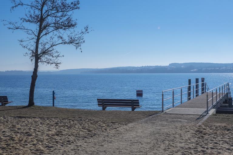 Keywords: lake constance park bench bench resting place web water lookout point lake lake view old tree log tree view alpine sun blue bank landscape lake park panorama