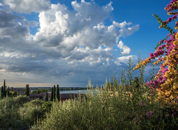 Keywords: lake garda sirmione italy europe water lombardy travel tourism view architectural flowers clouds sky summer skyline