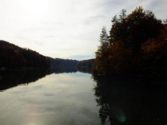 Keywords: lake of gruyère lac de la gruyère mirroring autumn water lake abendstimmung