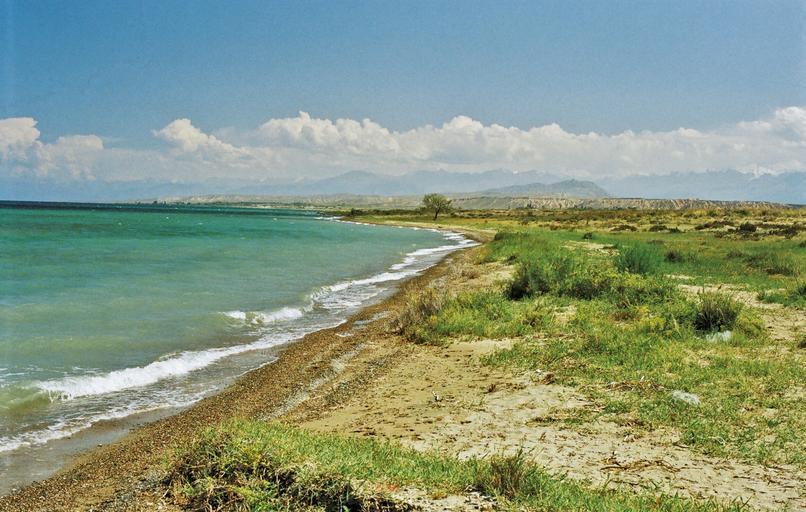 Keywords: area asia away bay beach blue clear clouds coast color day ecology glacier hill horizontal ice idyllic issyk-kul kyrgyzstan lakes landscape loch mountains nature peaks picturesque range resort rocks rocky sand sea