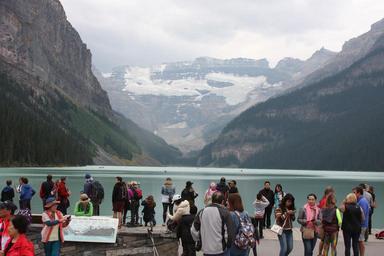 Keywords: lake canada forest alberta water white outdoor sunlight tree clear natural park national canadian green travel view rock rocky mountains banff sunny scenery louise summer light alpine sun moraine reflection color