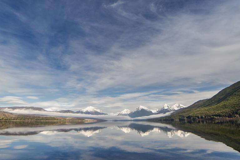 Keywords: lake mcdonald landscape mountains skyline peak reflection water glacier national park montana usa calm serene quiet peaceful