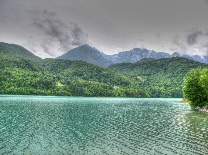 Keywords: lake mountains water landscape scenery tranquil clouds
