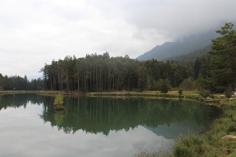 Keywords: lake pond mirroring water landscape italy south tyrol voells forest trees mountains rest bergsee