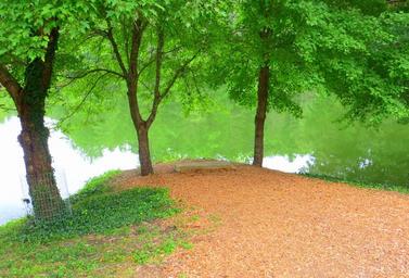 Keywords: lake trees peaceful bench green nature water park summer outdoor beautiful tranquil