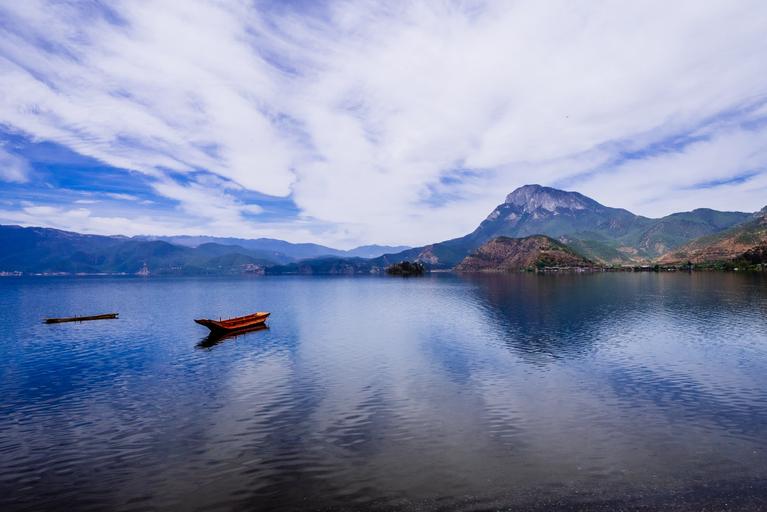 Keywords: lake water boats peaceful scene tranquil calm landscape mountains reflection mirror nature sky clouds outdoor surface view clear fresh