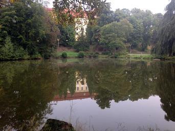 Keywords: lake water mirroring bank tree nature villa park