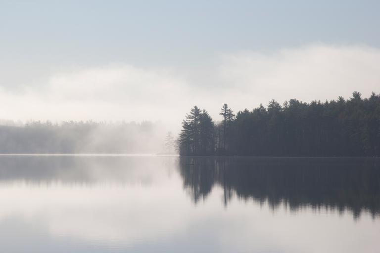 Keywords: lake water reflection mist trees nature landscape