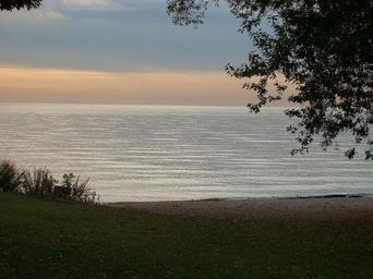 Keywords: lake water sky tree coast dusk canada sunset