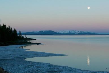 Keywords: lake yellowstone moon setting night dawn sky landscape scenic silhouette outdoors trees forest peaceful twilight view tranquil water reflection