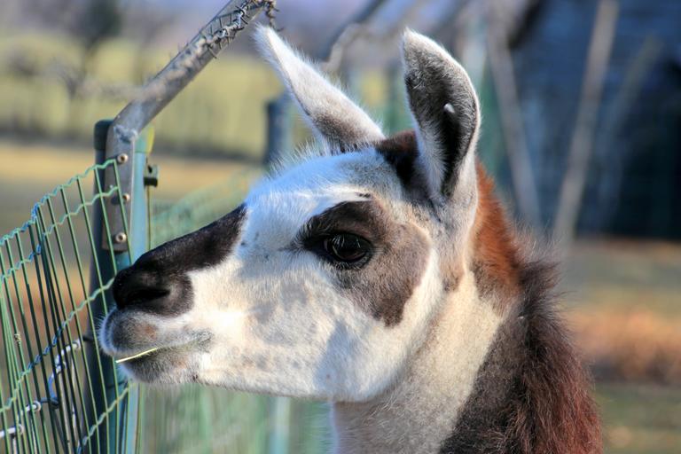 Keywords: lama camel lama head animal livestock fluffy view fenced pasture looking over fence