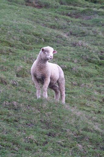 Keywords: lamb sheep animal nature cute mammal white grass mountain outdoor standing adorable