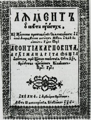 | Keywords: Lament Karpovič.jpg  be Тытульны а куш «Ляманта на сме ць Л Ка повіча» 1620 Ста ажытная бела уская літа ату а XII XVII стст / Уклад п адм камент І Саве чанкі   інск Кнігазбо 2007  608 с Лявонцій Ка повіч Custom license marker 2014 04 11 PD-old-100 Uploaded with UploadWizard 1620 books Liavoncij Karpovič |