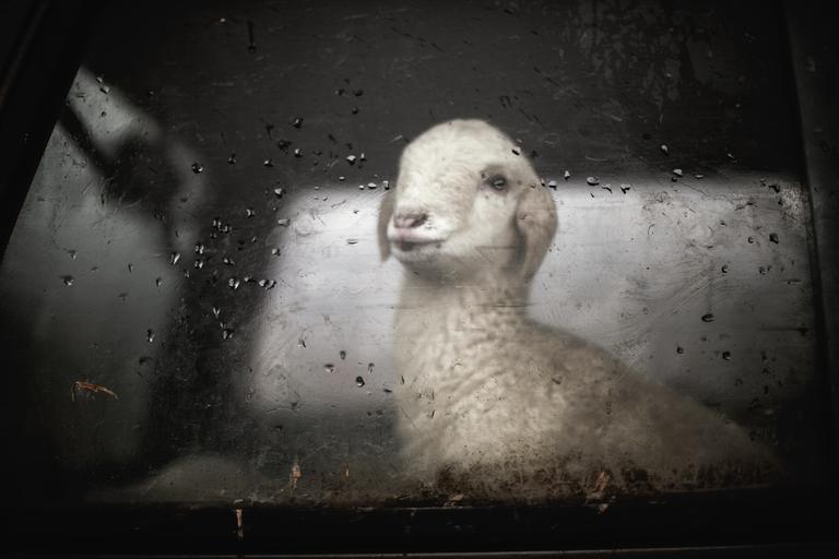 Keywords: lamp funny cute animal transportation window looking out rainy water rain