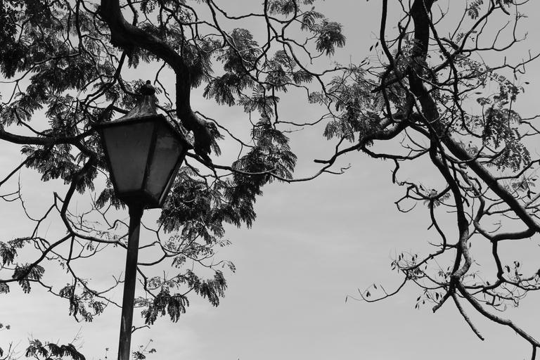 Keywords: lamps branches black and white lights leaves trees stems plants outdoor bright