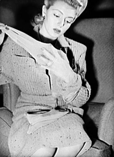 | Keywords: Lana Turner fsa 8b01037.jpg Lana Turner American actress inspecting the ankle-flattering bracelet design embroidered on dressy fine point lisle cotton mesh hose LOC-image fsa 8b01037 1941-10 Farm Security Administration PD-USGov Photos of people in stockings FSA-OWI Lana Turner Fashion in 1941 Black and white photographic portraits of actresses Women facing right |