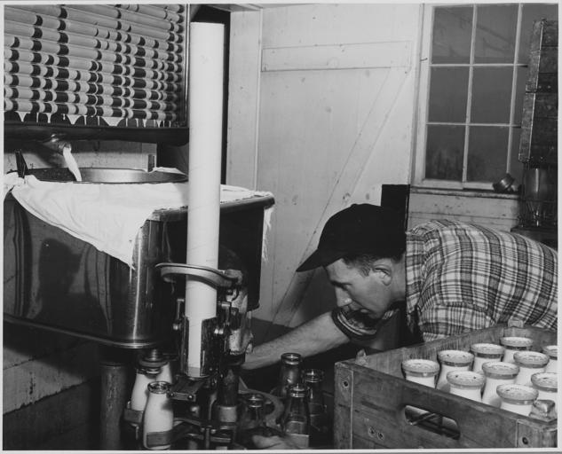 | Keywords: Landaff, Grafton County, New Hampshire. Pasturizing and bottling at Mr. George Clement's farm. He an . . . - NARA - 521497.jpg Scope and content Full caption reads as follows Landaff Grafton County New Hampshire Pasturizing and bottling at Mr George Clement's farm He and one other man in Landaff retail their milk and take in more than do those who ship milk to Boston Both had to invest in expensive equipment and buy some of the local milk routes Here the milk is being cooled bottled and capped General notes 521497 Local identifier 83-G-41238 Department of Agriculture Bureau of Agricultural Economics Division of Economic Information ca 1922 - ca 1953 NARA-Author Rusinow Irving Photographer 5307166 <br /> Still Picture Records Section Special Media Archives Services Division NWCS-S National Archives at College Park 8601 Adelphi Road College Park MD 20740-6001 1941-03-03 Record group Record Group 83 Records of the Bureau of Agricultural Economics 1876 - 1959 Record group ARC 412 Photographic Prints Documenting Programs and Activities of the Bureau of Agricultural Economics and Predecessor Agencies compiled ca 1922 - ca 1947 documenting the period ca 1911 - ca 1947 Series ARC 521048 File unit File unit ARC Variant control numbers NAIL Control Number NWDNS-83-G-41238 Other versions <gallery> File Landaff _Grafton_County _New_Hampshire _Pasturizing_and_bottling_at_Mr _George_Clement's_farm _He_an_ _ _ _-_NARA_-_521497 tif tif File Landaff _Grafton_County _New_Hampshire _Pasturizing_and_bottling_at_Mr _George_Clement's_farm _He_an_ _ _ _-_NARA_-_521497 jpg jpg </gallery> NARA-cooperation PD-USGov Irving Rusinow Landaff New Hampshire NARA |