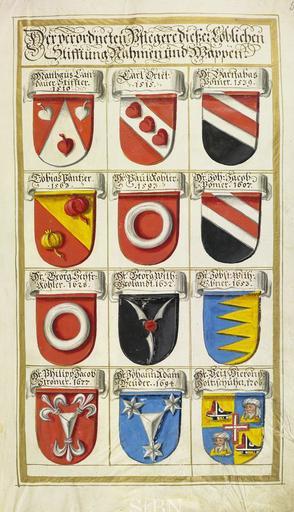 MAKE A MEME View Large Image Landauer II 005 r.jpg Wappen der Pfleger der Landauerschen Zwölfbrüderstiftung Matthaeus Landauer Stiffter 1510 Carl Örtel 1515 Barnabas Pömer 1539 Tobias Pantzer 1563 Paul Kohler 1593 Joh ann Jacob Pömer 1607 Georg Seyfr ied Kohler ...