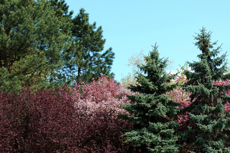 Keywords: landscape colorful tree spring cherries foliage park color nature sky green colors time of year blue pink maroon