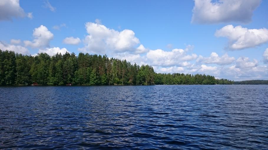 Keywords: landscape lake beach trees water finnish nature photo blue lake in finland