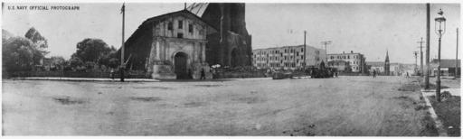 | Keywords: Landscape photograph of San Francisco during the Earthquake and Fire of 1906 - NARA - 296862.tif  San Francisco during the Earthquake and Fire of 1906 Scope and content This is a wide angle view ;Full caption Across from Mission Dolores on Dolores Street looking northward down the street The old MIssion survived but the newer chursh was a total loss General notes This photograph was most likely printed in the 1950s 296862 Local identifier Mission San Francisco de Asis Department of Defense Department of the Navy Mare Island Naval Shipyard Office of the Commander Office of the Shipyard Historian 1976 - ca 1996 NARA's Pacific Region San Bruno NRHAS 1000 Commodore Drive San Bruno CA 94066-2350 04/1906 Record group Record Group 181 Records of Naval Districts and Shore Establishments 1784 - 2000 Record group ARC 510 Subject Files compiled 1976 - 1996 documenting the period ca 1854 - ca 1996 Series ARC 296821 File unit Earthquake 1906 1 of 2 1906 - ca 1980 File unit ARC 296854 Variant control numbers NAIL Control Number NRHS-181-MINSYHISTSUBJ-EQ1906 1 -8<br /> Other Identifier NY9-28413-3-56 yes Other versions NARA images of California - NARA-cooperation PD-USGov Mission Dolores San Francisco earthquake of 1906 Buildings damaged by earthquakes 1906 Mission District San Francisco NARA images of San Francisco County California Black and white photographs of religious buildings California Black and white photographs of San Francisco Earthquake Panoramics of San Francisco |