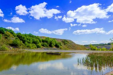 Keywords: landscape sky lake trees clouds nature rest summer green idyll hill nature reserve mirroring