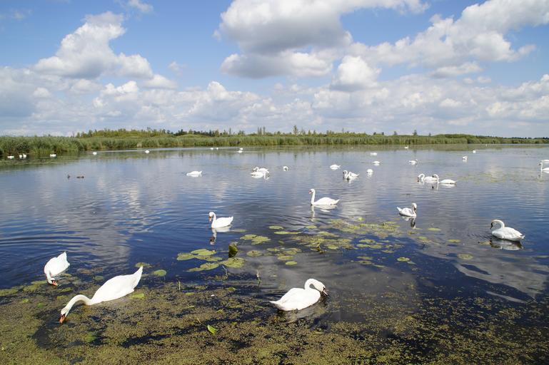 Keywords: landscape spring lake nature reserve nature moorland wetland summer grasses reed silted nature conservation southern germany sky clouds summer landscape baden württemberg mirroring water lake tributary waters swans waterfowl majestic animal world fauna