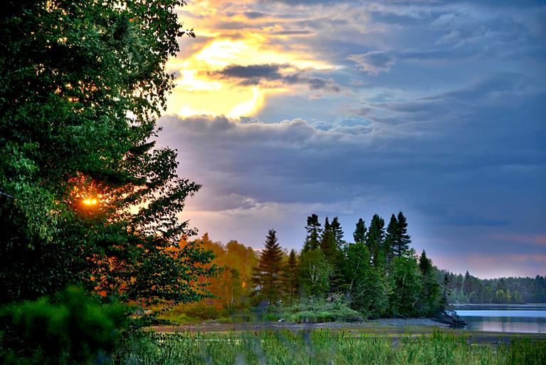 Keywords: landscape sunset nature twilight sky clouds colors lake summer trees evening light québec canada