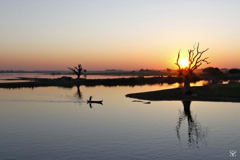 Keywords: landscape sunset river water myanmar burma canoe barca