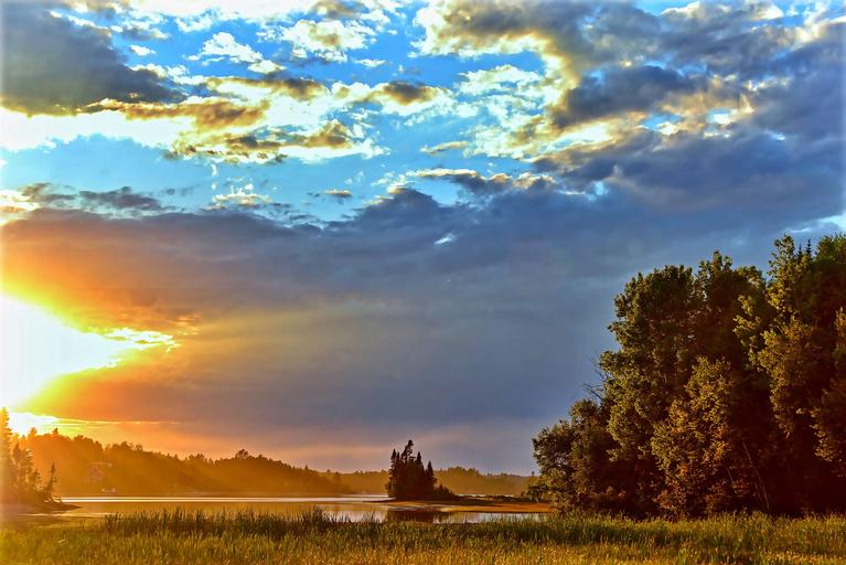 Keywords: landscape sunset twilight evening clouds lake water trees québec canada
