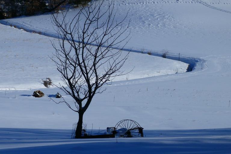 Keywords: landscape winter scenery snow tree agricultural matèriel nature white snowy landscape light and shade contrast