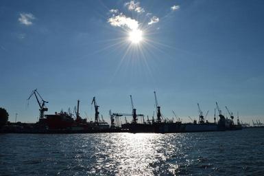 Keywords: landungsbrücken elbe harbour cranes cranes port port city hamburg winter northern germany sea sun
