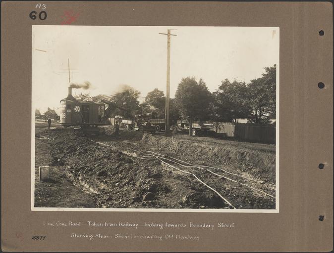 | Keywords: archives state records nsw staterecordsnsw newsouthwales blackandwhite photo border outdoor black and white Title: A3 - Lane Cove Road - Taken from Railway - looking towards Boundary Street. Showing steam shovel excavating old roadway Dated: earlier than 1946 Digital ID: 20224_a038_000003 Series: NRS 20224 Photographs of metropolitan, country roads ferries etc., and miscellaneous operations, New South Wales . Rights: No known copyright restrictions www.records.nsw.gov.au/about-us/rights-and-permissions We'd love to hear from you if you use our photos/documents. Title: A3 - Lane Cove Road - Taken from Railway - looking towards Boundary Street. Showing steam shovel excavating old roadway Dated: earlier than 1946 Digital ID: 20224_a038_000003 Series: NRS 20224 Photographs of metropolitan, country roads ferries etc., and miscellaneous operations, New South Wales . Rights: No known copyright restrictions www.records.nsw.gov.au/about-us/rights-and-permissions We'd love to hear from you if you use our photos/documents. |