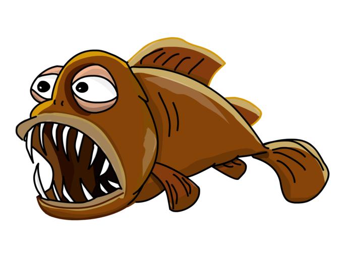 Keywords: lantern fish fish jaw big mouth cartoon character big teeth formidable angry cartoon brown