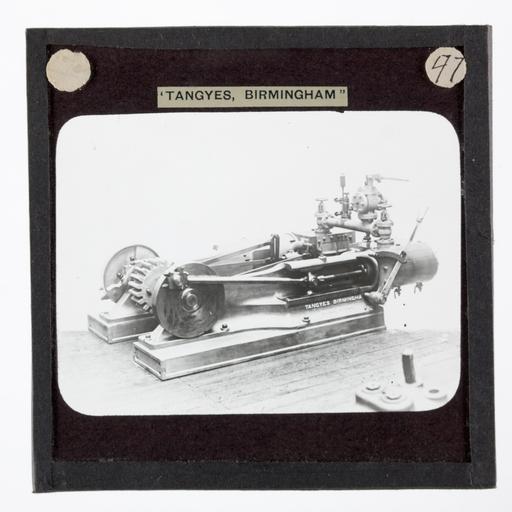 | Keywords: Lantern Slide - Tangyes Ltd, Cross-Compound Steam Engine, circa 1910.jpg Tangye high-pressure horizontal cross-compound twin-cylinder steam engine Size mm 83 83 3 exhibition history Text printed in black ink on white adhesive paper label over black mask TANGYES BIRMINGHAM Institution Museum Victoria Lantern Slide Standard 3¼ in x 3¼ in Black White object history One of 239 glass lantern slides depicting products manufactured by Tangyes Limited engineers of Birmingham England The images include various products such as engines centrifugal pumps hydraulic pumps gas producers materials testing machines presses machine tools hydraulic jacks etc Tangyes was a company which operated from 1857 to 1957 They produced a wide variety of engineering products exported worldwide including Australia and other British colonies It is thought that this collection of magic lantern slides was used by a local agent for sales purposes These images were originally used to illustrate Tangyes Ltd product catalogues from the period 1910 - circa 1920s PD-Australia author http //collections museumvictoria com au/items/803620 Info http //collections museumvictoria com au/content/media/46/433396-original jpg Image Uploaded with GWToolset Lantern Slide - Tangyes Ltd Cross-Compound Steam Engine circa 1910 http //collections museumvictoria com au/content/media/46/433396-original jpg Tangyes Lantern Slide Collection Cross-compound steam engines |