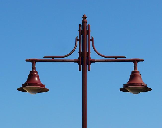Keywords: lantern street lamp light lamp street lighting historically horizontal equal double sky blue technology shed light lighting historic street lighting enlighten