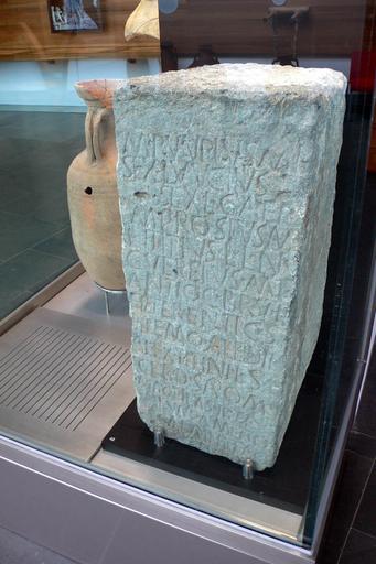 Keywords: Lapida fundacion.jpg M arcus Puupius Marci l ibertus <br />Sex tus Luucius<br />Sex ti l ibertus Gaep --- <br />M arcus Prosius M arci l ibertus <br />N umerius Titius L uci l ibertus Nu --- <br />C aius Vereius M arci l ibertus <br />Antioch us Bruti s ervus <br />Acerd o Sapo ni M arci s ervus <br />mag istri pilas III et fundament a <br />ex caement o faci undas <br />coerauere de Epigraphische Datenbank Heidelberg http //edh-www adw uni-heidelberg de/edh/inschrift/HD037489 HD037489 http //edh-www adw uni-heidelberg de/edh/foto/F012536 F012536 es Hispania Epigraphica http //eda-bea es/pub/record_card_1 php refpage 2Fpub 2Fsearch_select php quicksearch CIL+II+3434+ rec 9521 9521 own Nanosanchez Ancient Roman inscriptions in Cartagena Spain CIL I² 002271 CIL II 003434 CIL II 005927 Collections of the Museo Nacional de Arqueología Subacuática ARQUA Liberti and libertae in Ancient Roman inscriptions Carthago Linked to EDH Linked to HEp Slaves in Ancient Roman inscriptions Cartagena |