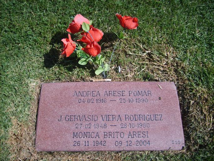 Keywords: Lápida Gervasio.JPG 33 27 50 11 S 70 46 0 99 W <br> Lápida del cantautor uruguayo Gervasio ubicada en el cementerio Parque del Sendero en Maipú Santiago de Chile Own 05/04/2008 http //tools wikimedia de/~daniel/WikiSense/Gallery php wikifam commons wikimedia org wikilang en order -img_timestamp img_user_text Jorgebarrios ofs 0 max 250 Jorge Barrios Taken with Samsung S500 Gravestones in Chile Artificial flowers Cementerio Parque del Sendero - Maipú José Gervasio Viera Rodríguez |