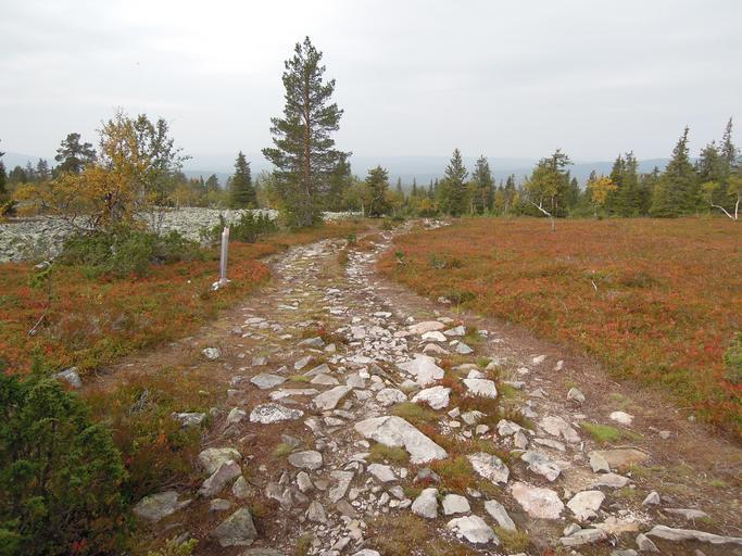 Keywords: lapland finnish the lapland nature autumn landscape fell terrain blue sun sky the path road journey on the road