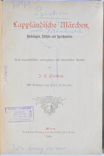 | Keywords: Lappländische Märchen 1333.jpg Lappländische Märchen Відень 1886 Титульний а куш З особистої бібліотеки І Ф анка Lappländische Märchen Volkssagen Rätsel und Sprichwörter Gerold Wien 1886 1886 Institution Shevchenko Institute of Literature Digital Collection PD-old-70-1923 1790 books from Germany Franko Personal Library Collections of books in libraries in Ukraine Shevchenko Institute of Literature Uploaded with VicuñaUploader | ||||