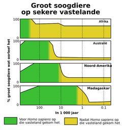 Keywords: Large Mammals Africa Australia NAmerica Madagascar af.svg af Persentasie soogdiere wat oorleef het tydens die Kwartêr 2013-10-19 WikiCommons Uweka other versions cc-zero Uploaded with UploadWizard Extinction