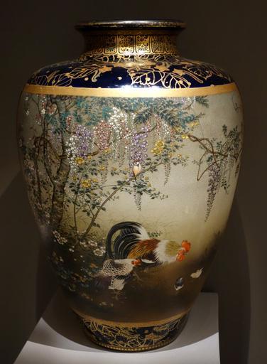 Keywords: Large Vase, Japan (Kyoto), Kinkozan workshop, 1870s-1920s, earthenware with overglaze and gold on dark cobalt - Chazen Museum of Art - DSC02394.JPG en Exhibit in the Chazen Museum of Art University of Wisconsin-Madison Madison Wisconsin USA This artwork is old enough so that it is in the public domain Photography was permitted in the museum without restriction 2013-07-21 14 02 42 own Daderot cc-zero Ceramics of Japan in the Chazen Museum of Art Uploaded with UploadWizard Kinkozan ware |