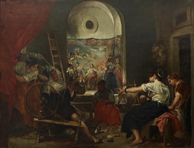 | Keywords: Las hilanderas, copia del original de Velázquez (Real Academia de Bellas Artes de San Fernando).jpg Artwork Creator Alejandrina Gessler y Lacroix Esta obra es una copia de la La fábula de Aracne que fue pintada por Diego Velázquez hacia 1657 y que se conserva en el madrileño Museo del Prado 1872 oil on canvas Size cm 94 69 Institution Real Academia de Bellas Artes de San Fernando http //ceres mcu es/pages/Main accession number 0281 http //ceres mcu es/pages/Main PD-old-100 Las Hilanderas Paintings after Diego Velázquez Alejandrina Gessler y Lacroix 19th-century paintings in the Royal Academy of Fine Arts of San Fernando 1872 paintings in Spain |