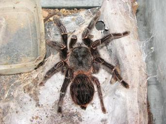 Keywords: Lasiodora parahybana, adult female 1.JPG en Brazilian Salmon Pink Birdeater own own photo HTO 2009-03-16 Lasiodora parahybana