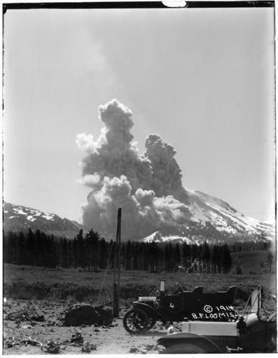 | Keywords: blackandwhite monochrome photo border outdoor black and white Second of six successive views of Lassen Peak in eruption, seen from Manzanita chute B.F. Loomis June 9, 1914 Archive VI-PH-C1.8 Second of six successive views of Lassen Peak in eruption, seen from Manzanita chute B.F. Loomis June 9, 1914 Archive VI-PH-C1.8 |