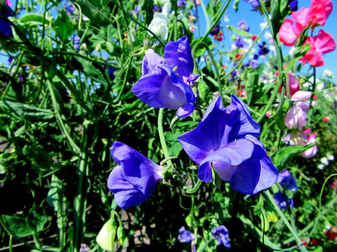 Keywords: lathyrus flowers summer nature flower garden blue sky bloom plants