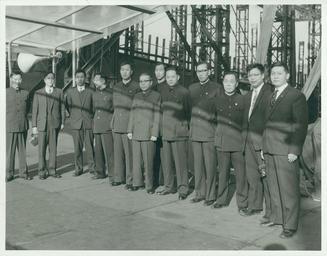 Keywords: sunderland shipbuilding shipyard william doxford & sons ltd williamdoxfordsonsltd cargo ship cargoship ship launches shiplaunches people's republic of china peoplesrepublicofchina pallion sunderland pallionsunderland dun huang dunhuang launch party launchparty people groupshot Members of the launch party of the cargo ship ‘Dun Huang’ built by William Doxford & Sons Ltd for the People’s Republic of China, 14 October 1966 (TWAM ref. DS.DOX/4/PH/1/876/1/2). Tyne & Wear Archives is proud to present a selection of images from its Sunderland shipbuilding collections. The set has been produced to celebrate Sunderland History Fair on 7 June 2014. It's a reminder of the thousands of vessels launched on the River Wear and the many outstanding achievements of Sunderland’s shipyards and their workers. These photographs reflect Sunderland’s history of innovation in shipbuilding and marine engineering from the development of turret ships in the 1890s through to the design for SD14s in the 1960s. The Sunderland shipbuilding collections are full of fascinating stories. Some of these are represented in this set, such as the ‘Rondefjell’, launched in two halves on the River Wear by John Crown & Sons Ltd and then joined together on the River Tyne. The set also shows the vital part that Sunderland’s shipbuilding industry played during the First World War. William Doxford & Sons Ltd built Royal Naval destroyers such as HMS Opal, which served in the Battle of Jutland, while other yards constructed cargo ships to help keep these shores supplied. (Copyright) We're happy for you to share these digital images within the spirit of The Commons. Please cite 'Tyne & Wear Archives & Museums' when reusing. Certain restrictions on high quality reproductions and commercial use of the original physical version apply though; if you're unsure please email archives@twmuseums.org.uk Members of the launch party of the cargo ship ‘Dun Huang’ built by William Doxford & Sons Ltd for the People’s Republic of China, 14 October 1966 (TWAM ref. DS.DOX/4/PH/1/876/1/2). Tyne & Wear Archives is proud to present a selection of images from its Sunderland shipbuilding collections. The set has been produced to celebrate Sunderland History Fair on 7 June 2014. It's a reminder of the thousands of vessels launched on the River Wear and the many outstanding achievements of Sunderland’s shipyards and their workers. These photographs reflect Sunderland’s history of innovation in shipbuilding and marine engineering from the development of turret ships in the 1890s through to the design for SD14s in the 1960s. The Sunderland shipbuilding collections are full of fascinating stories. Some of these are represented in this set, such as the ‘Rondefjell’, launched in two halves on the River Wear by John Crown & Sons Ltd and then joined together on the River Tyne. The set also shows the vital part that Sunderland’s shipbuilding industry played during the First World War. William Doxford & Sons Ltd built Royal Naval destroyers such as HMS Opal, which served in the Battle of Jutland, while other yards constructed cargo ships to help keep these shores supplied. (Copyright) We're happy for you to share these digital images within the spirit of The Commons. Please cite 'Tyne & Wear Archives & Museums' when reusing. Certain restrictions on high quality reproductions and commercial use of the original physical version apply though; if you're unsure please email archives@twmuseums.org.uk |