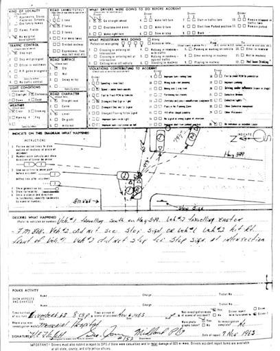 | Keywords: Laura Bush police report.jpg Police report on car crash of future First Lady Laura Bush Released by the Midland Police Department on May 3 2000 in response to an open-records request that was submitted in March 2000 Midland Police Department Laura Bush Road accidents |