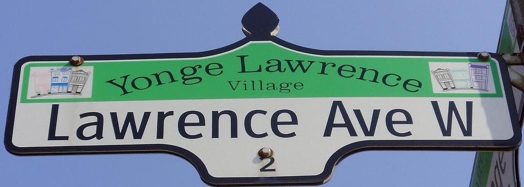Keywords: Lawrence Ave West Street Sign.jpg en A street sign for Lawrence Avenue West in Toronto Canada at its intersection with Yonge Street marked with the livery of Yonge Lawrence Village Own GTD Aquitaine 2008-05-31 Lawrence Avenue Toronto