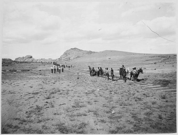 | Keywords: Laying tracks on the extreme front of Prescott and Eastern Railroad in Arizona Territory, ca. 1898 - NARA - 522969.tif Local identifier 92-F-79B-21 War Department Office of the Quartermaster General 1914 - 09/18/1947 Still Picture Records Section Special Media Archives Services Division NWCS-S National Archives at College Park 8601 Adelphi Road College Park MD 20740-6001 Record group Record Group 92 Records of the Office of the Quartermaster General 1774 - 1985 Record group ARC 421 U S Military Posts of the Late 19th Century compiled ca 1890 - ca 1899 Series ARC 522968 Variant control numbers NAIL Control Number NWDNS-92-F-79B-21<br /> Select List Identifier AMWEST 030 General notes Scope and content File unit File unit ARC yes <gallery> File Laying_tracks_on_the_extreme_front_of_Prescott_and_Eastern_Railroad_in_Arizona_Territory _ca _1898_-_NARA_-_522969 tif tif File Laying_tracks_on_the_extreme_front_of_Prescott_and_Eastern_Railroad_in_Arizona_Territory _ca _1898_-_NARA_-_522969 jpg jpg </gallery> NARA-cooperation PD-USGov Rail construction in the United States Arizona in the 1890s Working animals Predecessors of the Atchison Topeka and Santa Fe Railway 1898 in rail transport in the United States NARA TIF images with categorized JPGs |